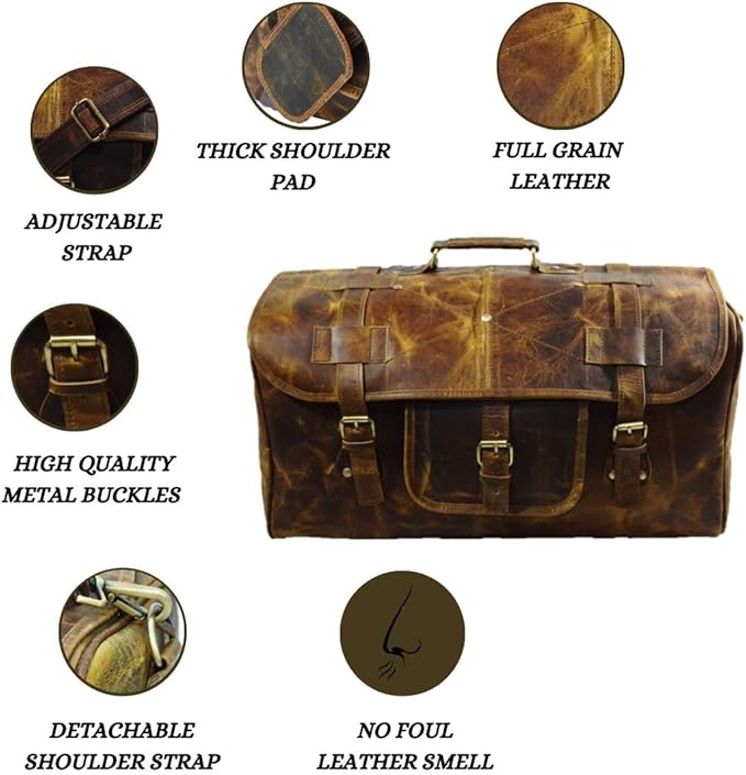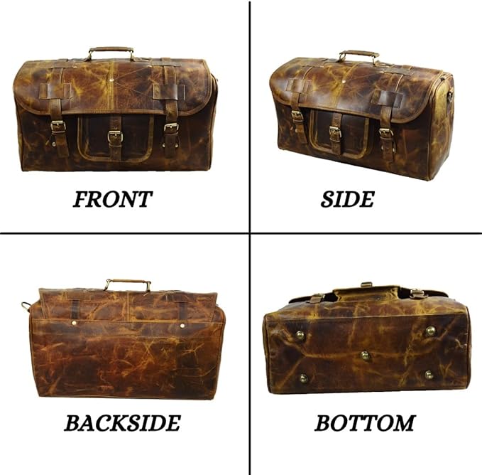 - HIGH QUALITY MATERIAL: This Duffel bag is made of Finest Buffalo leather and handcrafted by experienced craftsmen; Vintage inspired design combined with the distressed leather gives a rich classy look.