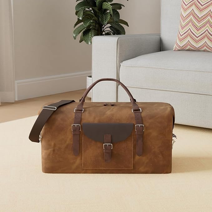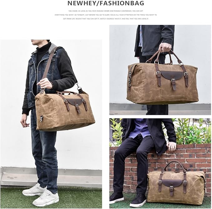 - Premium Quality Material: This duffel bag is made of top quality genuine crazy horse leather and waterproof durable canvas,bottom rivets. The premium quality ensure the long lasting durability. The high-density canvas won't rip or tear when you put a lot of things in the duffel tote. And the quality solid zinc-alloy hardware wonβt gather rust easily.