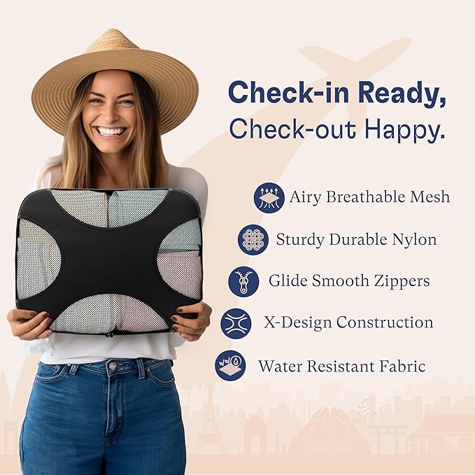 - Easy Clean Material – Watch liquids glide smoothly off your packing cubes making it easy for cleaning. Accompanied by smooth snag free ergonomic zipper pulls, pack your way through any travel adventures while resting assure your packing cubes are made from the best material.