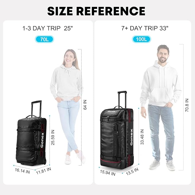 Gonex Rolling Duffle Bag with Wheels, 70L Water Repellent Wheeled Travel Duffel Luggage with Rollers 25 inch, Black