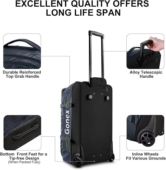 Gonex Rolling Duffle Bag with Wheels, 70L Water Repellent Wheeled Travel Duffel Luggage with Rollers 25 inch, Navy