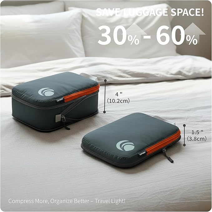 - Space Saver: The packing cubes for travel compression fit more items, and keep your luggage perfectly organized on the go.The packing cubes compression save 30% to 50% room (especially for fluffy items) not only for trips but also for indoor storage.