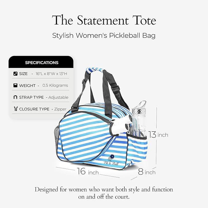 Pik’le’Ball Sport Premium Women's Pickleball Bag – Stylish and Versatile Sports Bag with Water Bottle Holder, Padded Paddle Pocket, and Spacious Design (fits 2+ Paddles!)