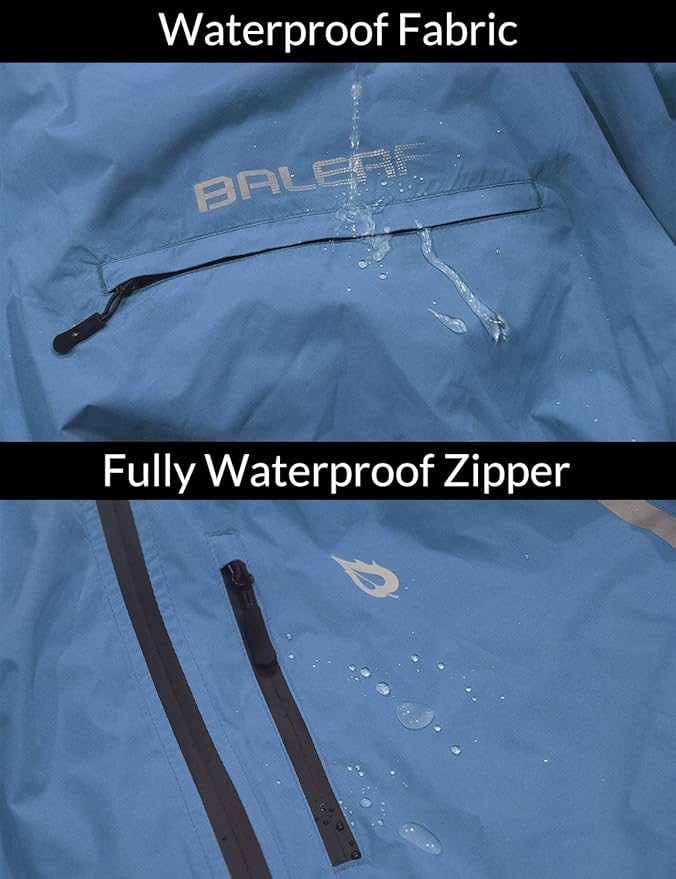 baleaf Men's Rain Jacket Waterproof Windbreaker Raincoat Running Cycling Hiking Gear Hood Lightweight Reflective Packable