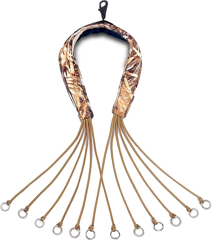 - Carry with confidence - Our duck lanyard strap features 12 drops with heavy-duty paracords and stainless steel slip rings, ensuring durability to last multiple hunting seasons. It can handle at least 12 ducks and more, providing reliable and convenient game transportation.