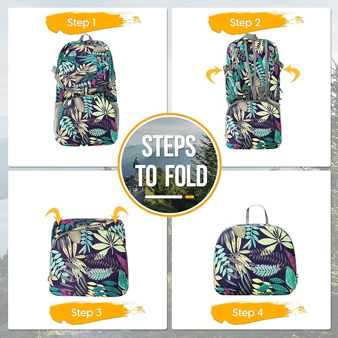 ZOMAKE Lightweight Packable Backpack 35L, Light Foldable Backpacks Water Resistant Collapsible Hiking Bag, Compact Folding Day Pack for Travel Camping(Mixed Color-Leaves)