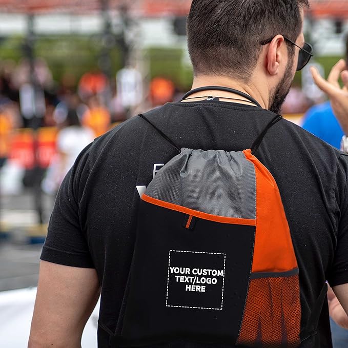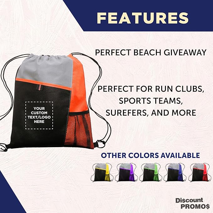 DISCOUNT PROMOS Custom Non-Woven Drawstring Backpacks Set of 10/50/100, Personalized Bulk Pack
