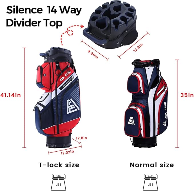 ASK ECHO T-Lock Golf Cart Bag with 14 Way Organizer Divider Top, Premium Cart Bag with Handles and Rain Cover for Men
