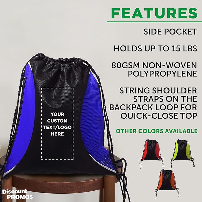 DISCOUNT PROMOS Custom Non-Woven Drawstring Backpacks Set of 10/50/100, Personalized Bulk Pack