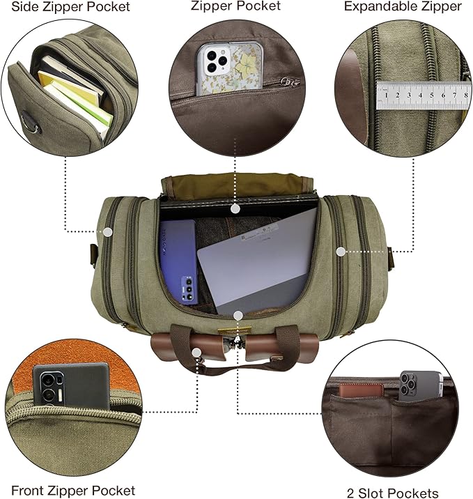 Wildroad 50L Travel Duffel Bag, Expandable Canvas Genuine Leather Duffle Bag Upgraded Overnight Weekender Carry on Bag