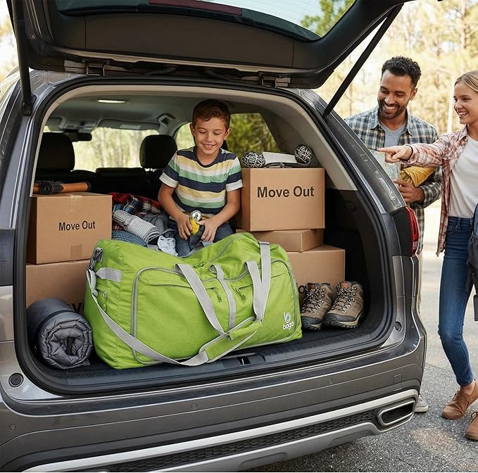 Bago Large Foldable Duffel Bags for Traveling Women & Men - 120L Packable Duffle Bag for Travel with Shoe Compartment - Water Repellant, Heavy Duty, Lightweight Folding & Collapsible (Green)