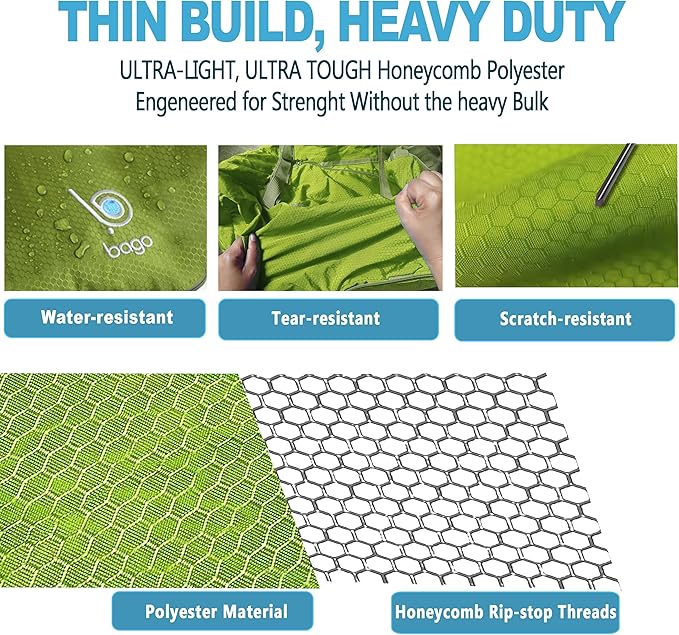 - CONVENIENT DESIGN: Waterproof duffel bag made of Honeycomb RipStop fabric with secure pockets, 2-way zippers and break-resistant pullers with rain flaps. Heavy Duty duffle bag buckles and clips, detachable padded shoulder strap and 2 bag handles.