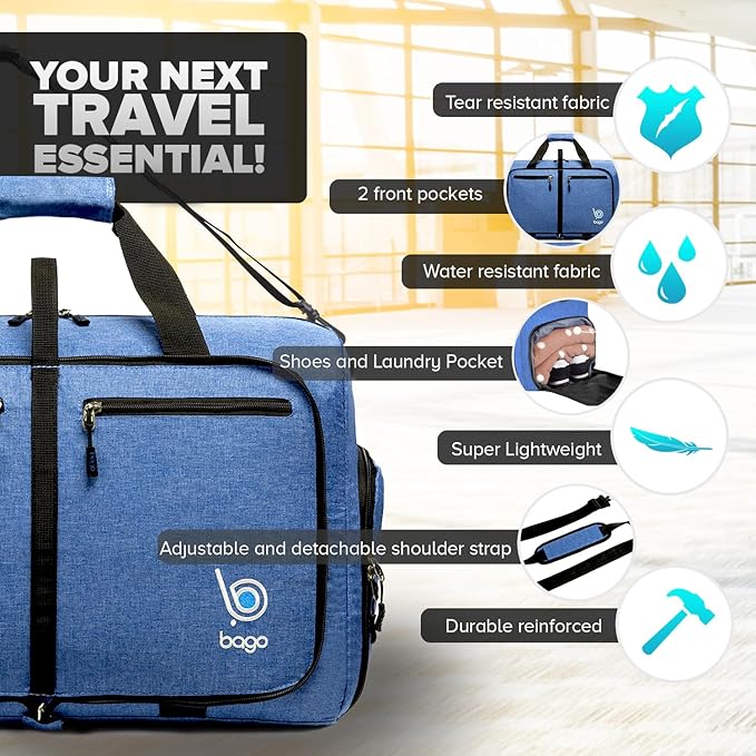 - RELIABILITY: Duffel bags for traveling. An overnight travel bag for men or large duffle bag for travel. Luggage bags for travel to carry your gifts/souvenirs, laundry, or to transfer items from a damaged suitcase to avoid excess baggage charges.