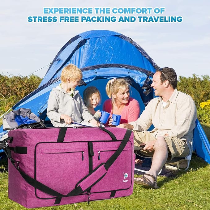 Bago Large Foldable Duffel Bags for Traveling Women & Men - 120L Packable Duffle Bag for Travel with Shoe Compartment - Water Repellant, Heavy Duty, Lightweight Folding & Collapsible (SnowPink)