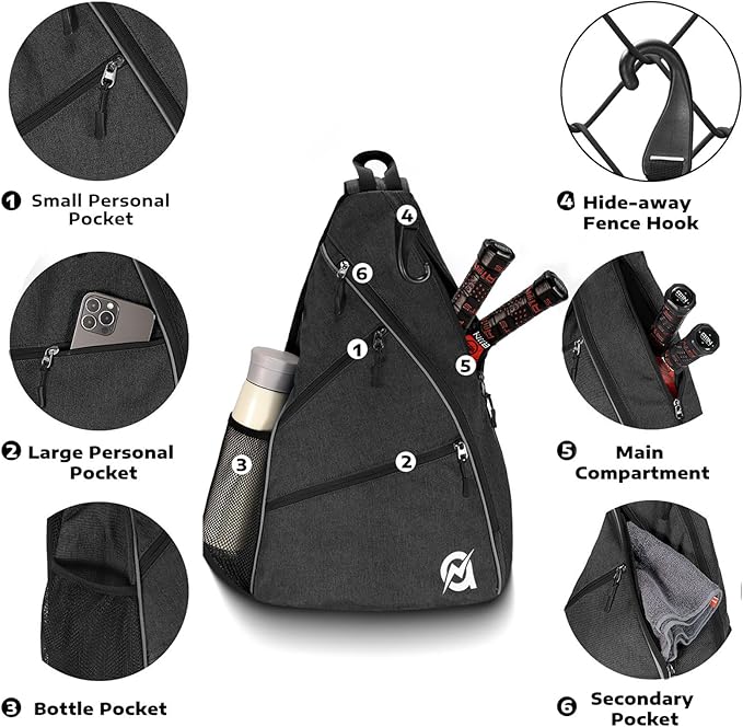 - Hidden Fence Hook: There is a fence hook hidden in the main compartment, you can conveniently hook the bag on the pickleball court.