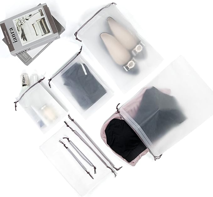 - 8 DRAWSTRING BAGS: Together with the bag comes 8pcs (6*8", 7*10", 10*14", 11*15", 2pcs of each size) drawstring bags, which worth 10 USD, perfect for your underwear, socks, shoes, cosmetics, etc. This can keep your changing clothes well organized during trip.