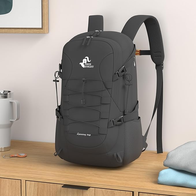 - Multi Compartment :Generous main compartments and multiple pockets allow you to keep all of your gear secure and organized.The spacious main compartment holds sleepingbag, clothes, or other everyday essentials. With one Interior Pouch for water bladder.It also has a front pocket with a zipper. The elastic cord is designed to store items that need to be easily accessible. In addition, it has two side pockets for your water bottle or umbrella.