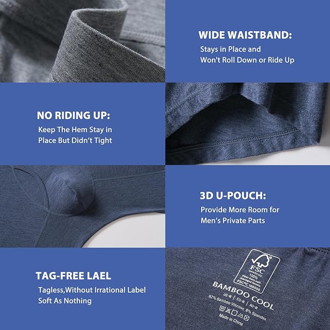• HIGH-QUALITY MATERIAL: Our men’s underwear boxer briefs are made of 92% viscose made from bamboo and 8% spandex, which is soft, breathable, moisture-wicking, and keeps you feeling fresh all day long.