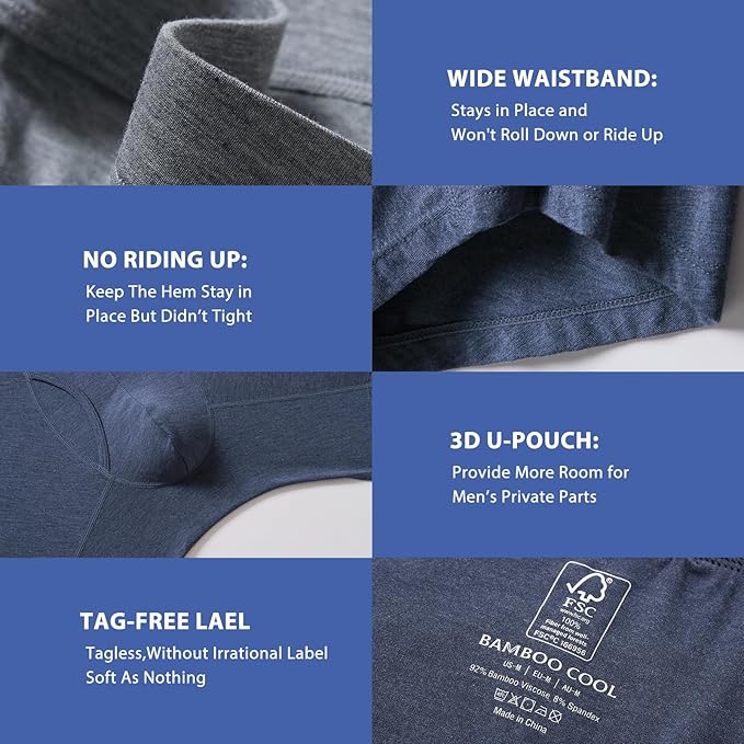 - HIGH-QUALITY MATERIAL: Our men’s underwear boxer briefs are made of 92% viscose made from bamboo and 8% spandex, which is soft, breathable, moisture-wicking, and keeps you feeling fresh all day long.
