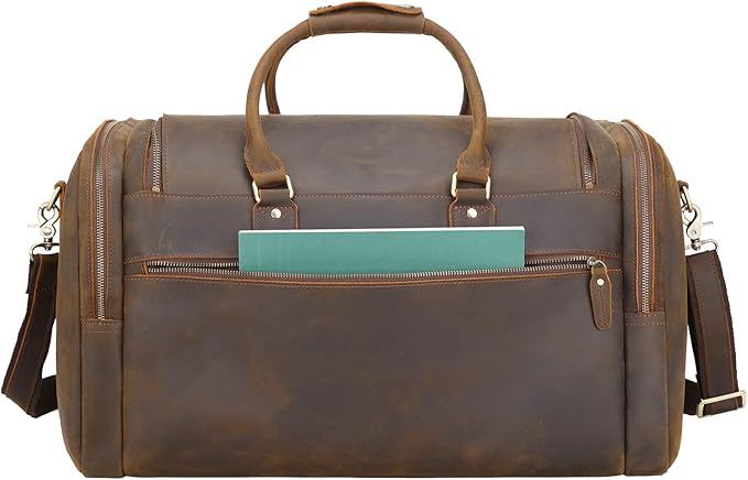 - 【Built to Last & Unique】Made of 2mm thick full grain cowhide leather, with delicate and even pores, it will develops a unique patina over time, adding a vintage charm to your leather weekender duffel bag. Outfitted with heavy duty Ykk metal zippers and sturdy hardware promise lasting durability, making it a reliable partner for any journey or outdoor leisure.