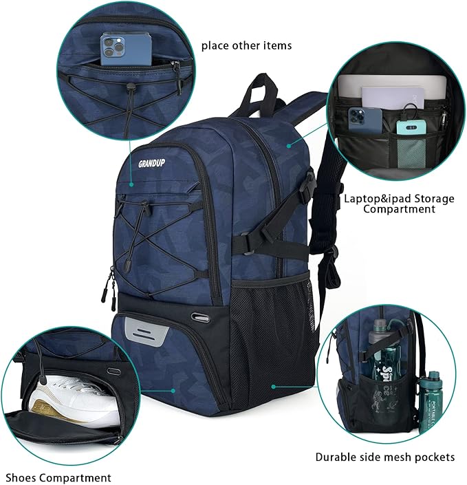 GRANDUP Basketball backpack with ball and shoes compartment Fit Volleyball, soccer, Swim, Gym, Travel, and School, large capacity sports training equipment bags