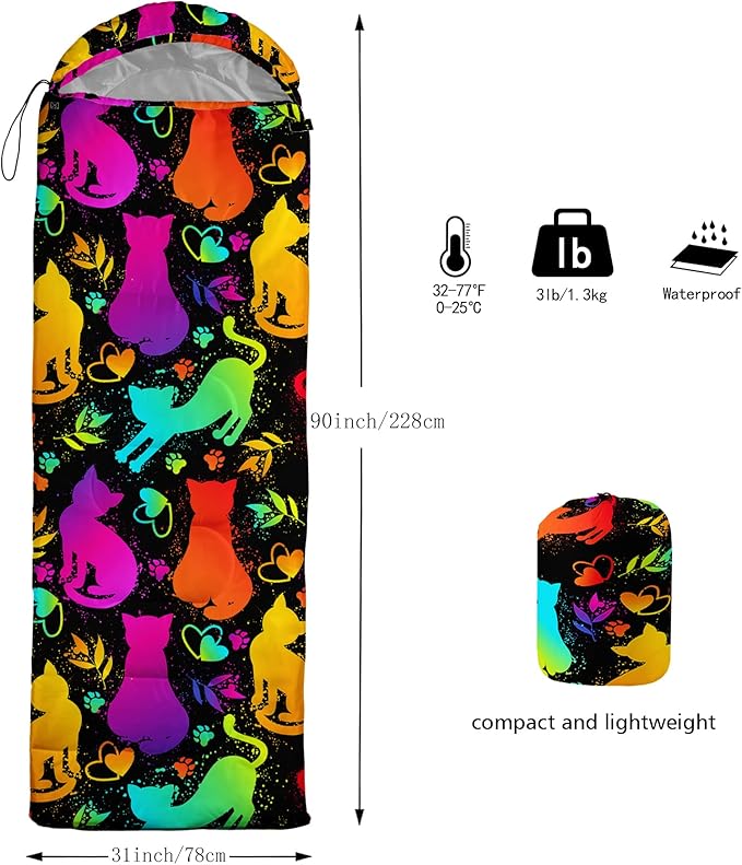 - FITS FOR 3 SEASONS: SIZE - 31 by 90 inches (W x D). Our sleeping bag can be used in 3 seasons with a design temperature of 32℉-77℉(0℃-25℃). These bags also have a weather resistant waterproof design to keep you warm and prevent you from any dampness.