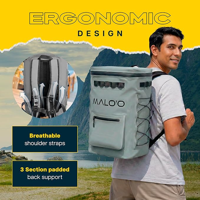 Malo'o Pro Adventure Insulated Backpack Cooler Holds 30 Cans for 48 Hours - Perfect for Camping, Hiking, Fishing, Kayaking, Sports, or Beach