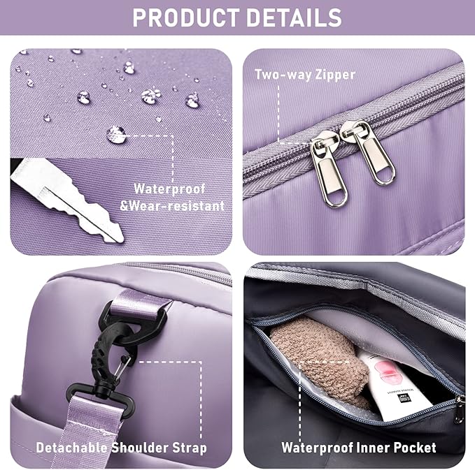 • SHOES COMPARTMENT: It features a zippered shoes compartment for your sneakers or dirty clothes. The additional inside and outside pockets to organize your gym necessities and accessories. It’s airline friendly as the backside trolley sleeve can easily slide over luggage handle and it fits in the overhead bin or under the seat for an airplane travel.