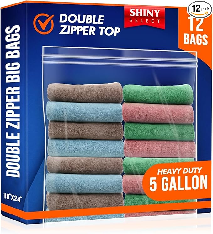- Jumbo Storage Solution - Organize and protect your belongings with our 5-gallon double zipper jumbo bags, offering ample space for your items. Each bag measures 18x24 inches, providing generous storage space for bulky items like blankets, clothing, and seasonal bedding.