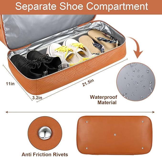 Weekender Bag for Women, Travel Duffel Bag Carry On Overnight Bag with Shoe Compartment Large Nylon Travel Weekend Tote Bag