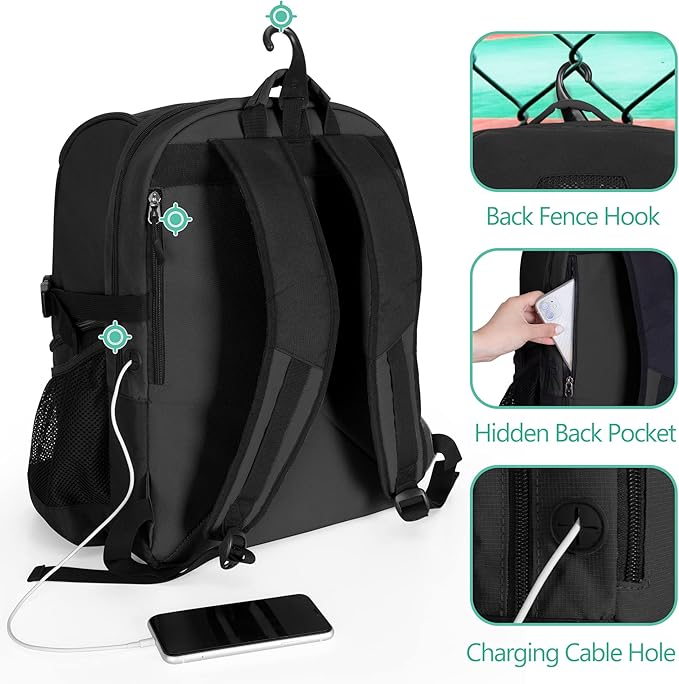 - Convenient Design: It features an integrated fence hook for the dugout. Front D-ring can hanging your sport towel or key. The hidden phone pocket and charging cable hole design bring great convenience