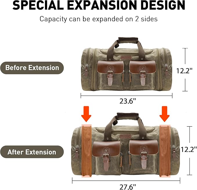Wildroad Waxed Canvas Duffle Bag - 60L Waterproof Genuine Leather Weekender Overnight Travel Hand Bag
