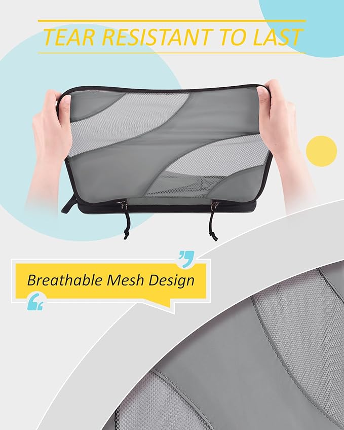 - Tear Resistant to Last: The suitcase organizer bag set is made of durable polyester and high-density mesh that won't easily wear out under heavy use or compression. Sturdy zippers ensure smooth operation and reduce the possibility of snagging, allowing you to open and close the packing cube with ease.