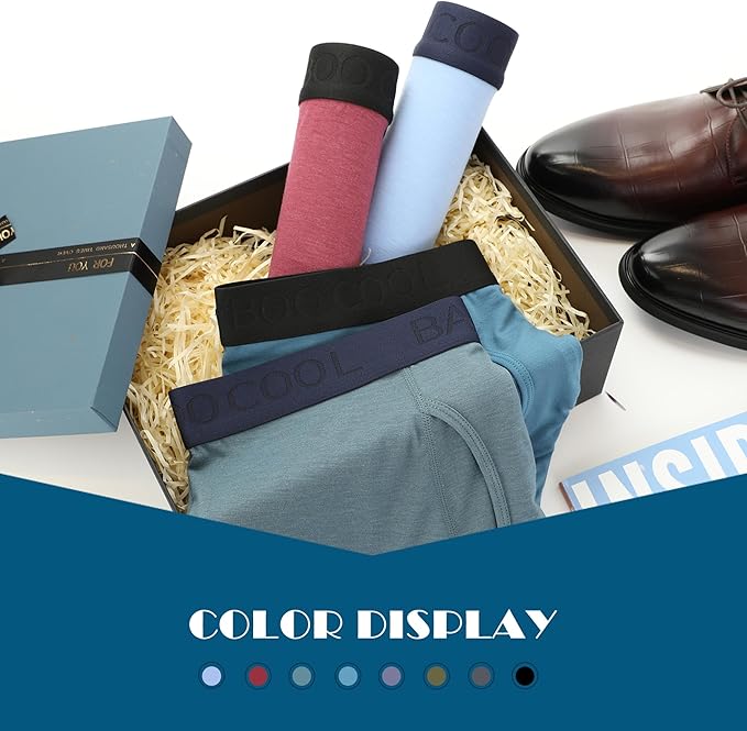 BAMBOO COOL Men's Underwear Breathable Boxer Briefs with Fly Moisture-Wicking Lightweight Underwear 7-Pack