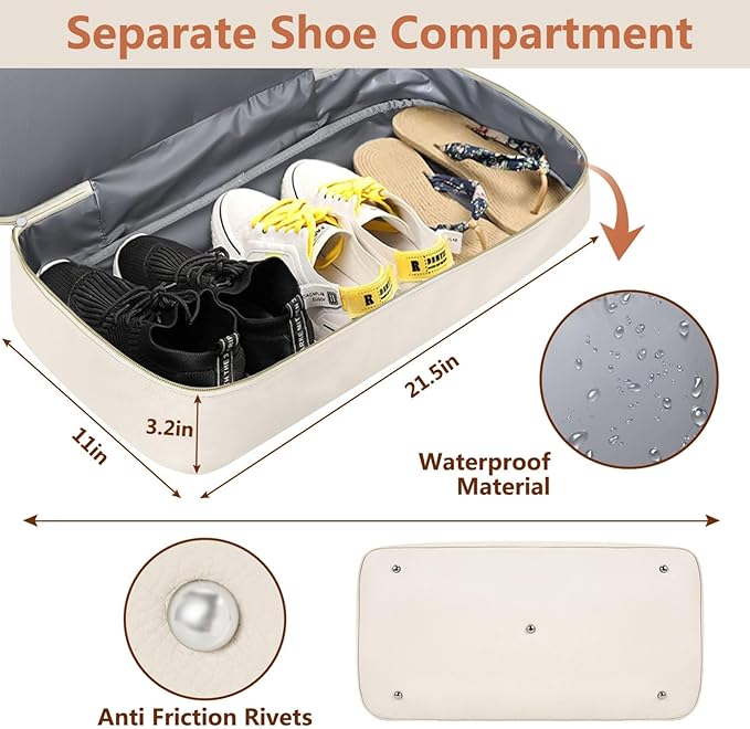 Weekender Bag for Women, Travel Duffel Bag Carry On Overnight Bag with Shoe Compartment Large Nylon Travel Weekend Tote Bag