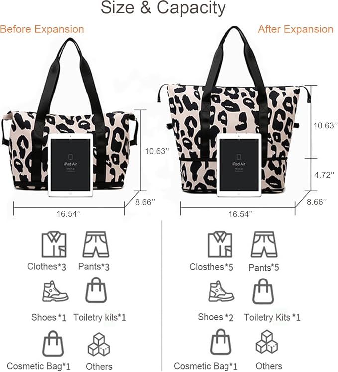 - Expandable size: Measuring 10.63''-15.35''*16.54''*8.66". Small enough to carry on or stack it on your suitcase. Big enough for work travel or beach getaway. Use it for various activities, and sports such as tennis, dance, golf, football, crossfit, and swimming.