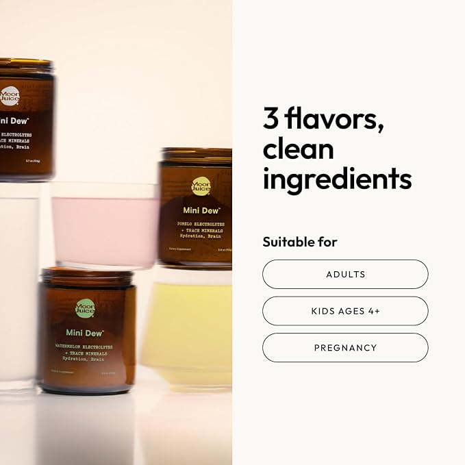 Moon Juice Mini Dew Electrolytes Powder - Sugar Free Minerals & Electrolyte Hydration Powder for Instant Hydration & Brain Support - Magnesium, Calcium, Potassium, Pink Salt, Watermelon, 30 Servings
