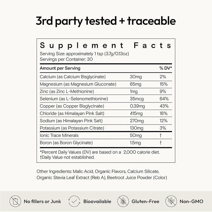 - Clean, Microplastic-Free Minerals - Our electrolyte drink mix is made with 100% traceable and sustainably sourced ingredients. Bioactive, bioavailable, vegan, keto, non GMO, gluten free, zero sugar, and no artificial sweeteners.