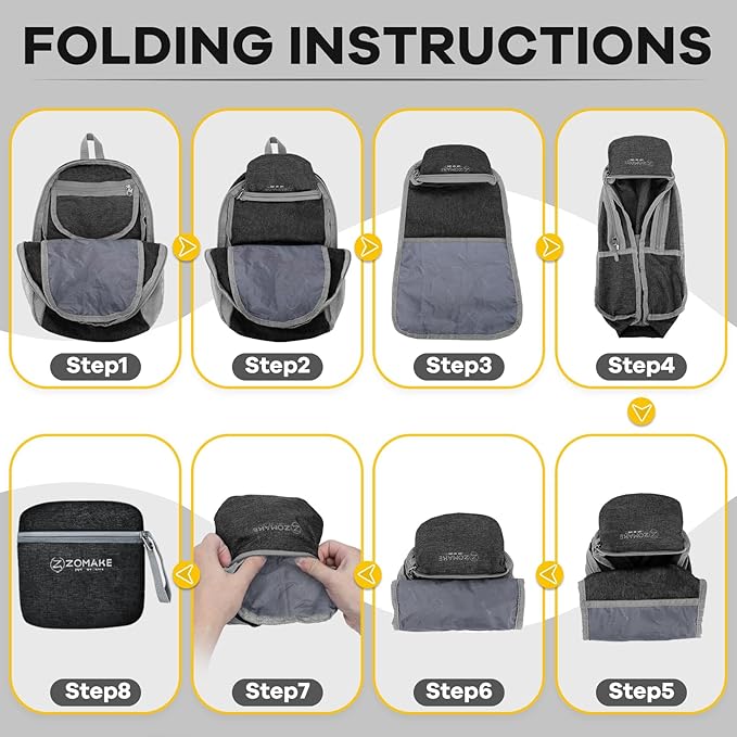 - Foldable and Compact:Our lightweight backpack can be folded into a small bag(LxWxH: 5.51x5.51x2.36 IN), easy to store and carry in luggage, handbags or cars. It is a genius for outdoor activity storage