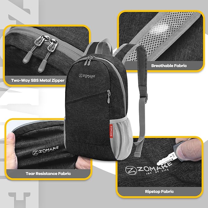 ZOMAKE Ultra Lightweight Packable Backpack 10L,Small Foldable Backpacks Hiking Water Resistant Collapsible Daypack for Women Men(Black-B1)
