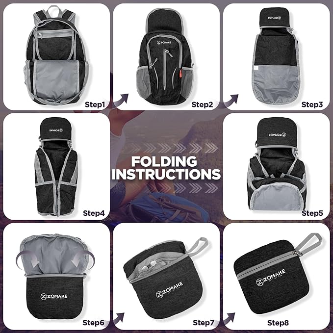 - Portable and Practical:This fold up backpack can be easily folded into a palm-sized handbag, which will not take up too much space when you put it into a drawer, suitcase or other bags. Unfold and use it anytime and anywhere to make your traveling easier and more comfortable. This foldable daypack has multiple practical pockets to help us organize and store our belongings in an organized way, such as cell phones; water bottles; umbrellas; keys; etc. easy access to things and no panic