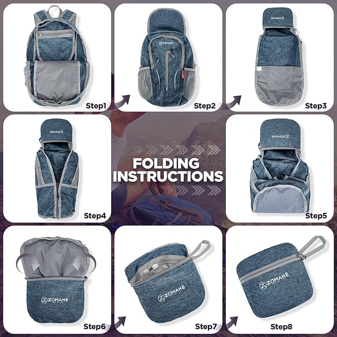 - Portable and Practical:This fold up backpack can be easily folded into a palm-sized handbag, which will not take up too much space when you put it into a drawer, suitcase or other bags. Unfold and use it anytime and anywhere to make your traveling easier and more comfortable. This foldable daypack has multiple practical pockets to help us organize and store our belongings in an organized way, such as cell phones; water bottles; umbrellas; keys; etc. easy access to things and no panic