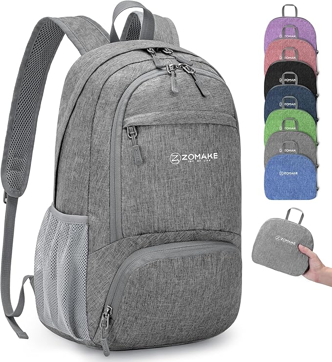 ZOMAKE Ultra Lightweight Packable Backpack 20L,Small Foldable Backpacks Hiking Water Resistant Collapsible Daypack for Women Men(Grey-B2)