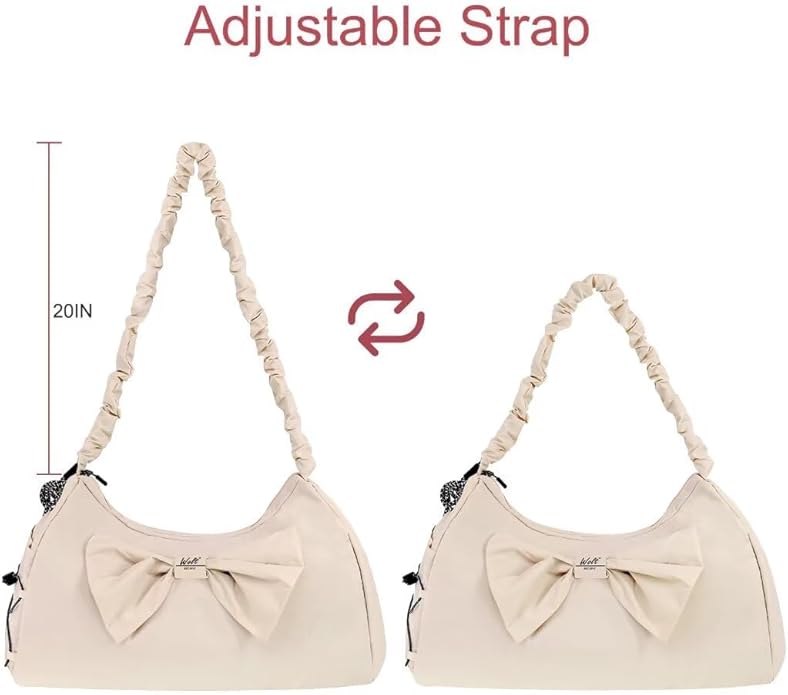 - Removable Bow Pocket: The yoga bag's front bow serves a dual purpose. It adds a decorative touch and enhances the bag's appearance. It can be also detached as a zippered pouch for conveniently storing smaller essentials like cosmetics, keys, or phone accessories