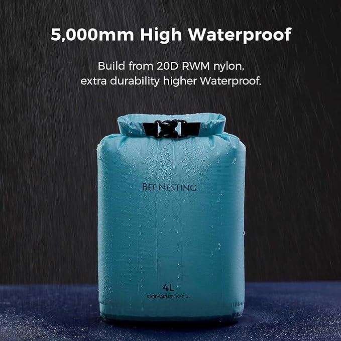 - 5,000mm High Waterproof- This waterproof bag is made from 20D RWM nylon with a smooth siliconized finish, waterproof membrane lining, and PU tape sealing. With a 5,000mm waterhead rating, it offers superior protection from moisture, ensuring your belongings stay dry even in the wettest conditions.