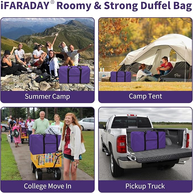 - LARGE CAPACITY DUFFLE BAG: With up to 110L capacity, the extra large duffel bag has 1 main compartment, 1 inside zipper pocket, 1 front zipper pocket, you can easy to organize different of things separatly.