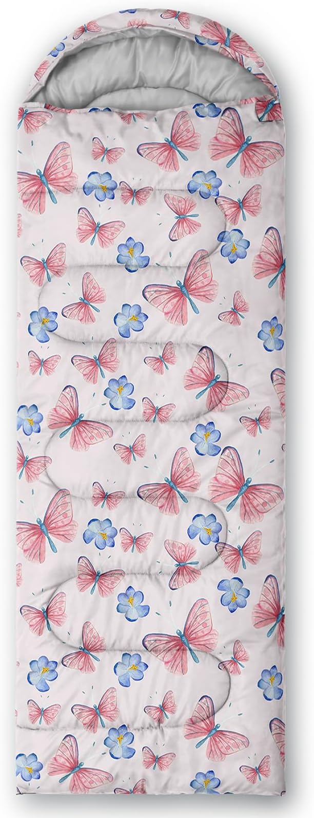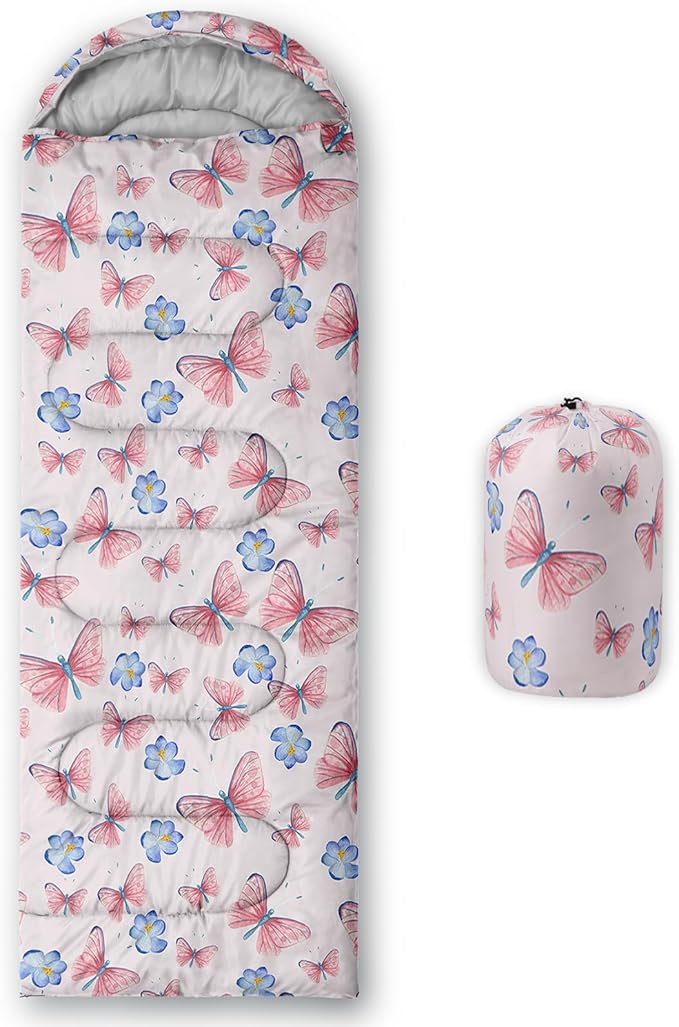 - 【Fits For 3 Seasons】: Size - 31 by 90 inches (W x D). Our Pink Butterfly sleeping bag can be used in 3 seasons with a design temperature of 32℉-77℉(0℃-25℃). These Blue Flower bags also have a weather resistant waterproof design to keep you warm and prevent you from any dampness.