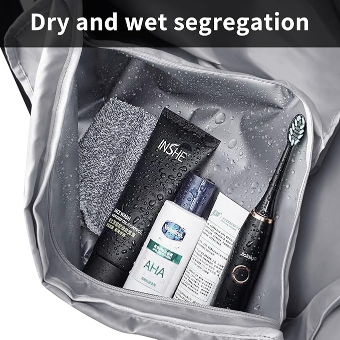 - Independent Shoe Pocket and Wet Compartment : Gym bag is dry wet separatio, have one waterproof compartment, can place wet items. Sports duffle bag have a shoe compartment, convenient to store your dirty shoes. Max storable men's shoe size: size 14