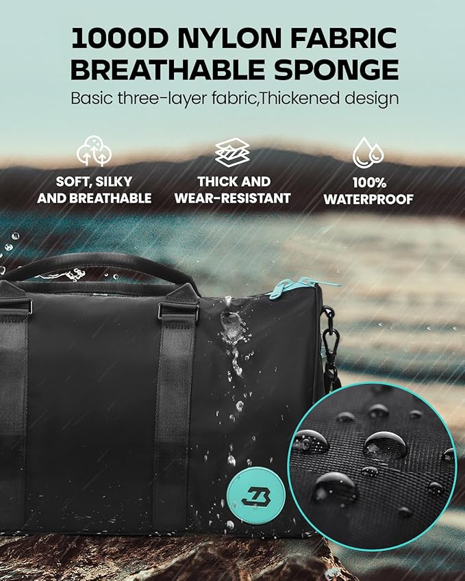 - 【Upgrade material】Movemingle Gym Bags used special 1000D nylon material, and triple-layer thickened design soft and wear-resistant.Unlike most 1000D nylon fabric, this isn't textured. The material is very 'slick so the dirt and water slide right off, 100% water-resistance and durability. Although it feels soft, it is actually tough can withstand the harshest conditions.