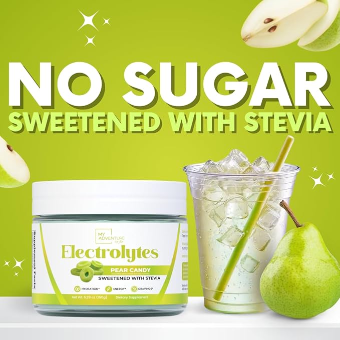 - Quench Your Thirst - Dive into the ultimate hydration experience with our Pear Candy Electrolytes Powder. Perfectly crafted to replenish your body, this electrolytes powder no sugar formula ensures every sip is filled with the goodness of electrolytes, making it your go-to hydration partner. Whether you're tackling intense workouts or just need a refreshing drink, our pear candy electrolytes deliver on taste and hydration.